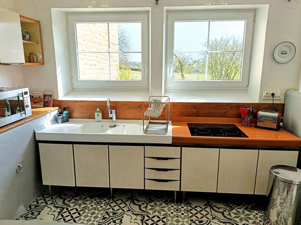 Clasificada con 4 estrellas de turismo, la Ecurie Insolite se encuentra en el cuerpo de la granja familiar, transformada en una casa rural de 120 m2 con una decoración conservada, repintada con cal, utilizando los accesorios y puertas existentes. La cocina en el antiguo establo de caballos, la sala de estar en el establo, el dormitorio delantero en el establo con los comederos... El segundo dormitorio, de 35 m2, con sus cajas puede acomodar de 2 a 4 camas. El baño se encuentra en el antiguo gallinero.