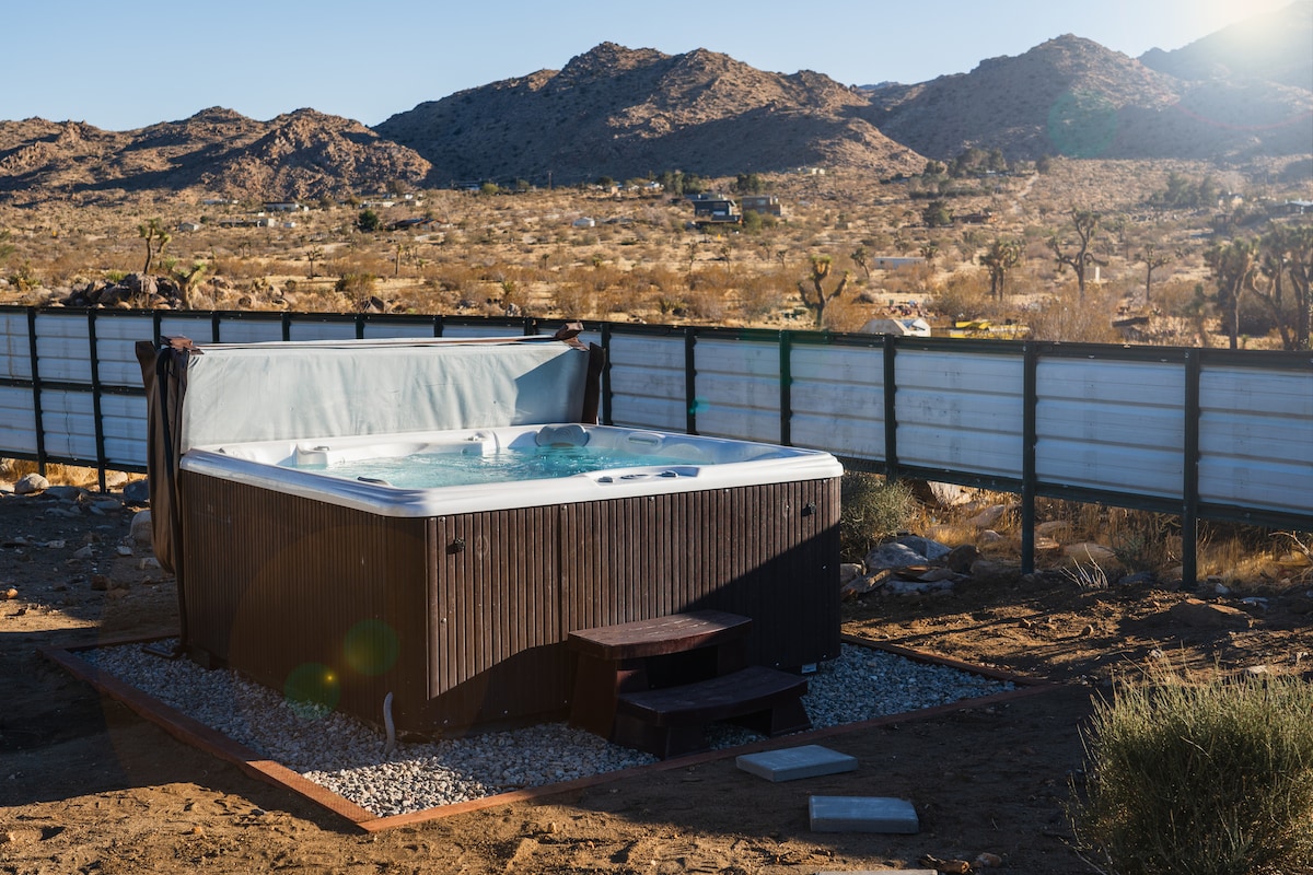 Bienvenido a Nebula Nest, una nueva (2025) minicasa de lujo ubicada en 2 acres privados en Joshua Tree. Diseñado para parejas que buscan algo íntimo, elevado e inolvidable. Los interiores oscuros y sombríos contrastan maravillosamente con los cielos abiertos del desierto. Despiértate con el amanecer en la montaña, relájate junto al fuego al atardecer y sumérgete bajo las estrellas en el jacuzzi en la terraza. Romántico, aislado y del tamaño perfecto para dos. A solo 15–20 minutos del Parque Nacional Joshua Tree.