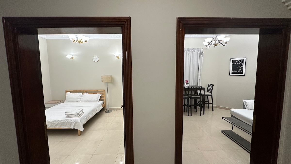 Nuestro apartamento de playa totalmente amueblado está situado en el centro de todas las atracciones turísticas, como Dubai Marina, The Beach JBR y Dubai Eye. Casi todos los recados se pueden hacer a pie. A pocos pasos del edificio encontrarás restaurantes de comida rápida/alta cocina, vida nocturna, un práctico mercado, spa, peluquería, lavandería, farmacia y clínica. Para desplazarte por el barrio puedes alquilar una bicicleta o un yate. El tranvía y el metro que van a Palm y al Dubai Mall Burj Khalifa están a 2 minutos. Acceso gratuito a piscinas/gimnasio.