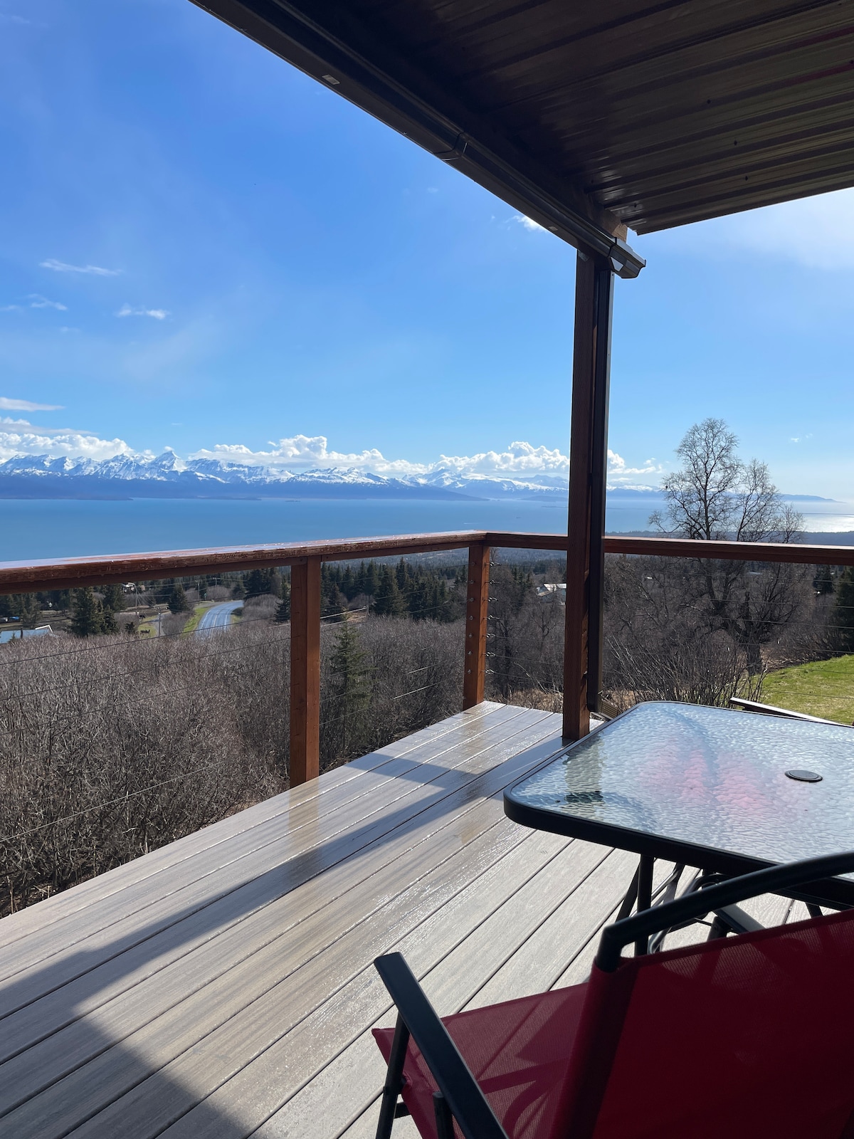 Enjoy a scenic stay at our quiet cabin a few miles from town and minutes from the airport and the bustling Homer Spit. Soak in the view of Grewingk Glacier and the surrounding mountains across Kachemak Bay from the deck while using the grill to sear up your freshly caught salmon dinner! Utilize the fully equipped kitchenette to be your own master chef. Coffee and tea is provided for those early mornings before heading out on the water for your fishing charter. We look forward to meeting you!