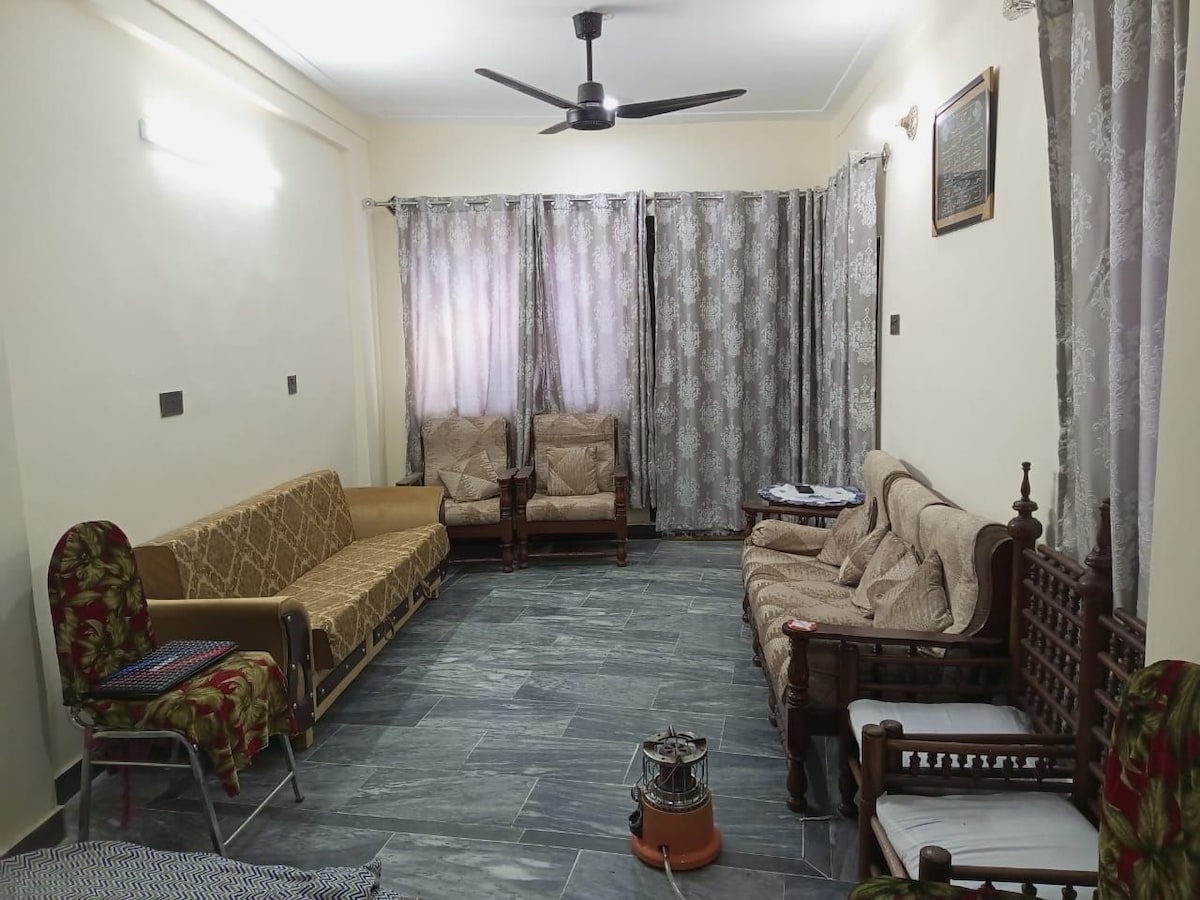 En el corazón de Abbottabad, a 1 minuto a pie de la carretera principal KKH y cerca de la autopista y la carretera de Galliat. El lugar es muy verde, tranquilo y silencioso, con impresionantes vistas desde la azotea y los balcones. Un lugar perfecto para familias y estancias largas. La barbacoa en la azotea puede hacer que tu estancia sea inolvidable. El alojamiento es propiedad privada del anfitrión y el anfitrión no vive allí. Muy seguro y protegido.