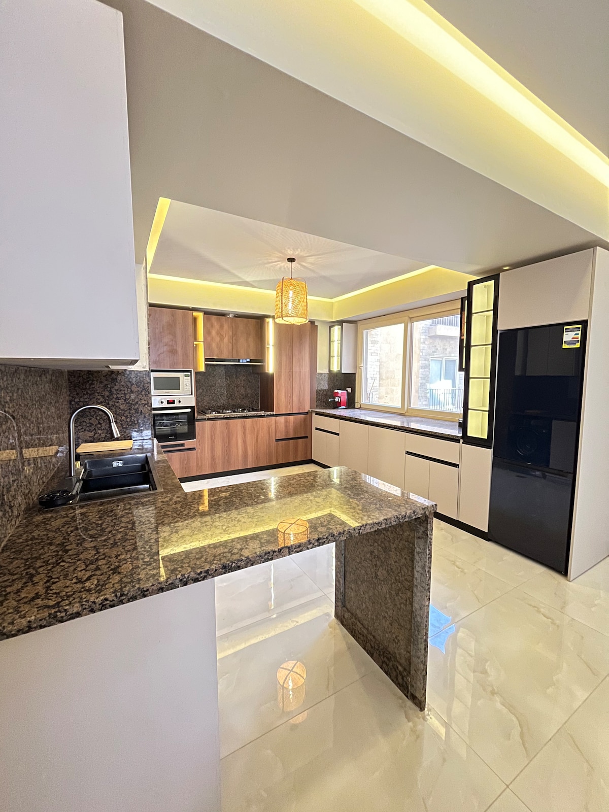 ¡Te damos la bienvenida a tu escapada de lujo en Guiza! Este moderno estudio está perfectamente diseñado para ofrecer tanto estilo como funcionalidad, fusionando el diseño contemporáneo con elementos inspirados en el rico patrimonio faraónico. Ubicado cerca de las Grandes Pirámides y del Gran Museo, este espacio es un refugio ideal para aquellos que aprecian la comodidad envuelta en la cultura.