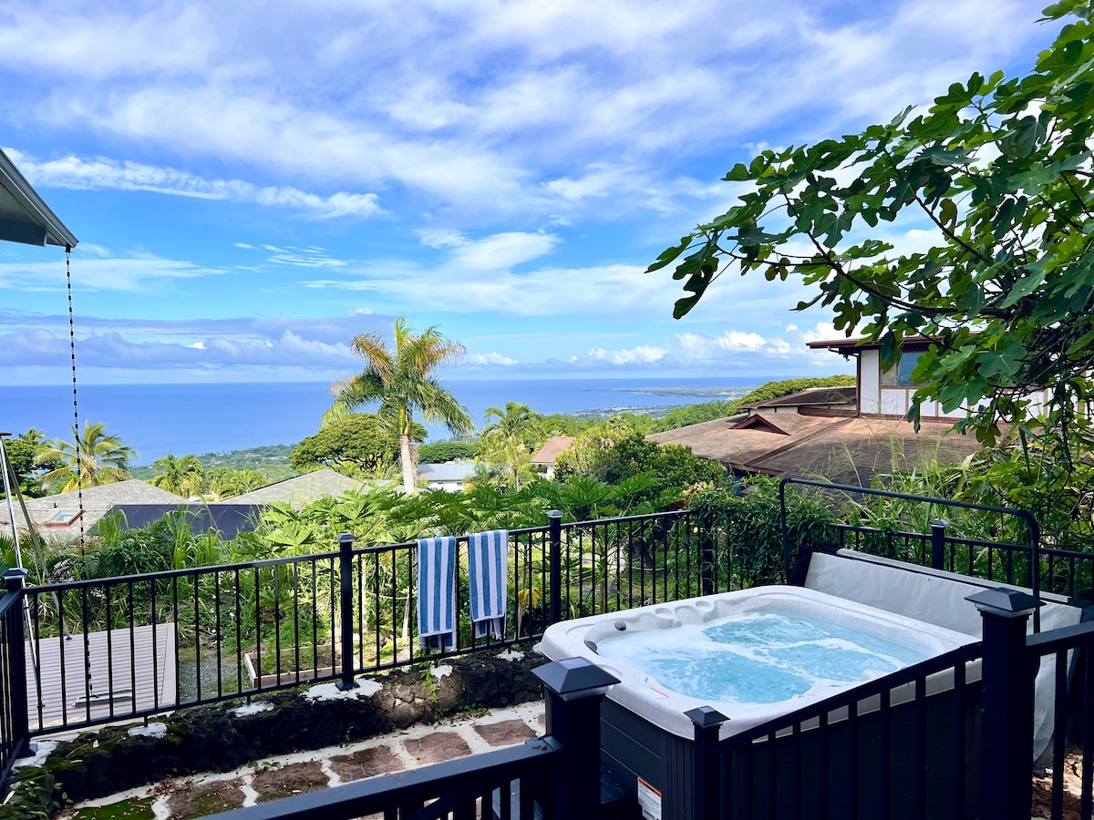 Kona es un lugar ideal con lanai privado, increíbles vistas al mar, temperaturas ideales y plaza de aparcamiento personal. Superanfitriones dedicados en el lugar para maximizar tu alojamiento y experiencia. Barrio muy seguro. Muchas comodidades/equipo de playa. A solo 6 minutos de playas y excelentes lugares para practicar esnórquel, a 10 minutos del centro de la ciudad para disfrutar de diversas opciones gastronómicas, tiendas y lugares históricos. Exquisitas playas de Kohala a 30 minutos al norte. El popular sendero Walua Trail está a solo 2 manzanas para pasear o correr. * No se aceptan reservas de terceros. Mahalo.