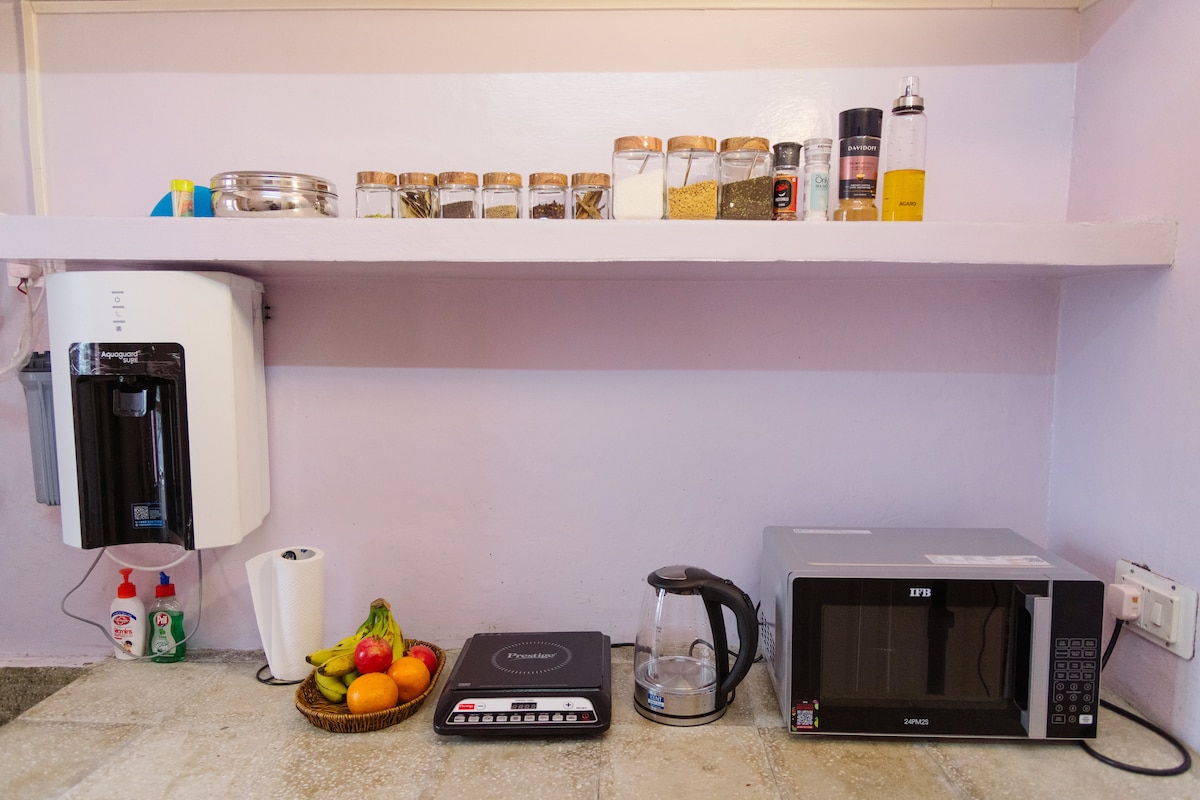 El Space Above BnB es una casa cuidadosamente decorada con arte, café y una vida consciente para crear el ambiente tranquilo para una estadía relajante. Ubicada justo encima de The Other Space Cafe en Jogiwara Village, esta casa está equipada con todas las comodidades modernas que uno necesita. Los huéspedes tienen un gran jardín con terraza abierta para disfrutar de las vistas de la cordillera de Dhauladhar, una zona de trabajo dedicada con internet rápido y una cafetería justo debajo que ofrece a todos los huéspedes un desayuno de cortesía todos los días.