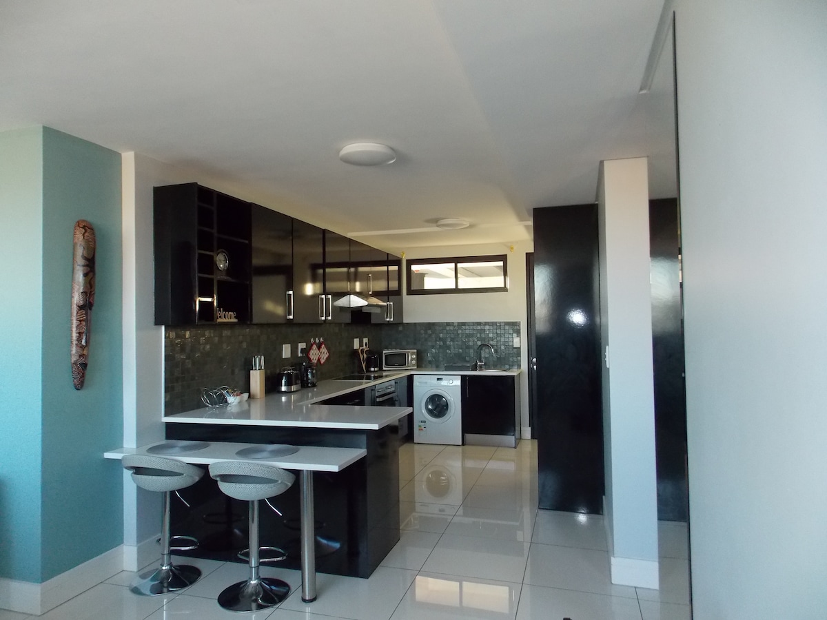 Departamento moderno y céntrico @77 en Independence Ave en el distrito financiero de Windhoek. Este apartamento cuenta con comodidad y comodidad, muy cerca de restaurantes, centro de arte y artesanía, hoteles Hilton y AVIVA, centros comerciales y otros servicios. Muebles de lujo y elegantes con cocina totalmente cubierta. Acceso gratuito al gimnasio y a la piscina. Estacionamiento gratuito asignado dentro del edificio. Asegurado con guardias de seguridad las 24 horas y cámaras. WIFI básico. Lavadora de la unidad, AIRE ACONDICIONADO y TV inteligente. ¡Bienvenido a casa!