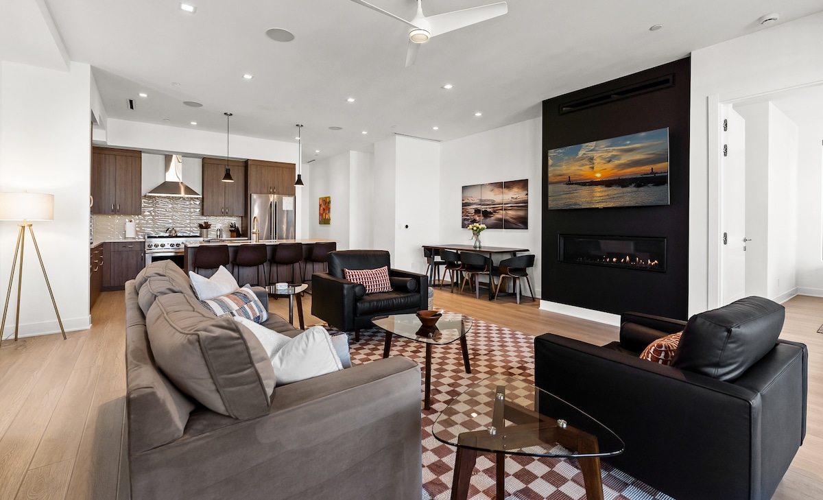 A stylish, historic lower-level loft featuring exposed brick and ductwork paired with true floor-to-ceiling walls for much-needed privacy. Designed by a family for families, this South Haven retreat blends charm, comfort, and convenience in a walkable location close to South Haven's countless activities. Amenities at Central Lofts include year-round access to a pool and hot tub, a fitness room, and seasonal access to a spacious shared patio with three grills.