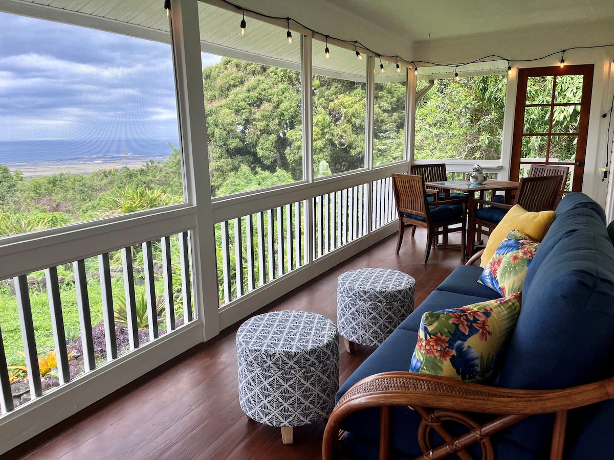 ¡Esta espaciosa casa remodelada te da la bienvenida a la magia de esta isla! Esta elegante casa es perfecta para tus vacaciones en Hawái. El anfitrión te da la bienvenida para compartir las majestuosas cascadas, los senderos de la selva tropical y otras infinitas delicias de la naturaleza. Los muebles fueron cuidadosamente seleccionados para brindar comodidad, relajación y atractivo. Disfruta de una vista parcial al mar desde el dormitorio y la sala de estar. Ubicada cerca de Kona, el aeropuerto y numerosas playas.