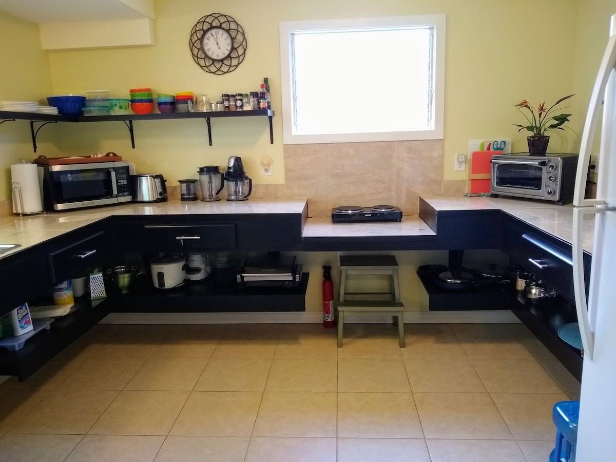 ¡Cómodo, espacioso, bien surtido! ¡Está a un paseo rápido del parque del césped para ver espectaculares vistas al mar! Conduce por la famosa y pintoresca "Red Road". Ven a visitar el mercado del tío Roberts todos los miércoles por la noche y los sábados por la mañana. Nada en la playa de Kahena a pocos minutos(ropa opcional). Echa un vistazo al maravilloso MERCADO DOMINICAL Maku'u. ¡Disfruta de un paseo nocturno bajo brillantes cielos iluminados por estrellas, escuchando a las ranas! Nuestro vecindario es una zona del cielo nocturno para observar las estrellas. Y la luna llena que brilla sobre las olas del océano es mágica.
