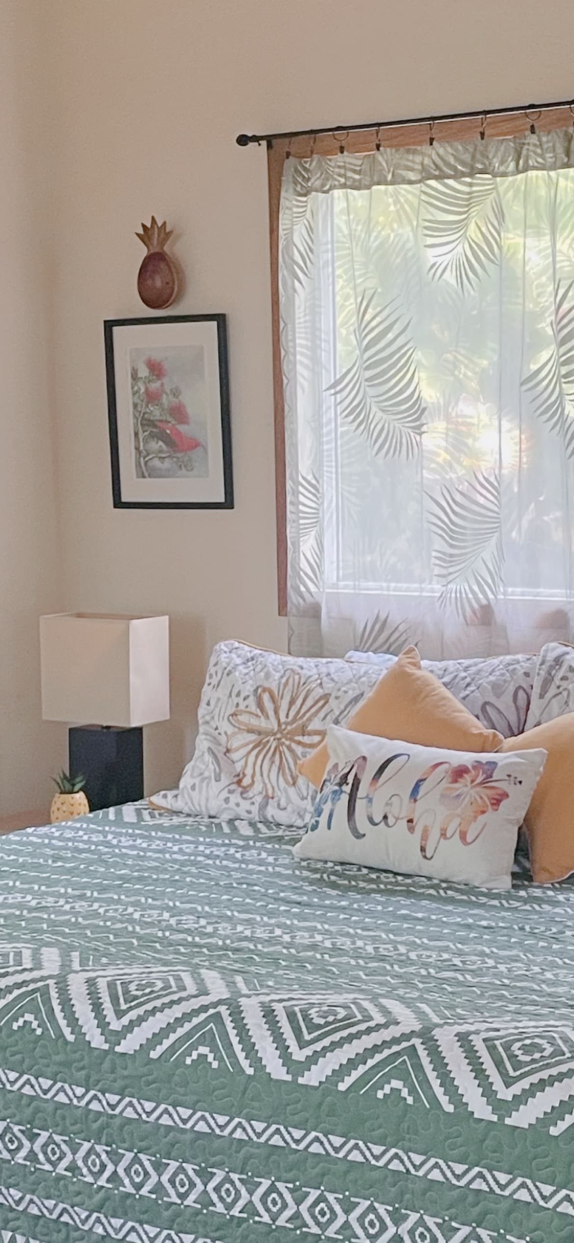 Descubre el encanto atemporal del antiguo Hawái en este refugio tropical hecho a mano. Inspirada en la arquitectura isleña de los años 30, esta casa combina madera natural, techos de vigas a la vista y comodidades modernas en un espacio que se siente elevado y conectado con la naturaleza. Despiértate con el canto de los pájaros y duérmete con el suave coro de las ranas coquí. Disfruta de tu café 100 % Kona de cortesía en el lanai, luego da un corto paseo hasta el parque frente al mar para disfrutar de los impresionantes amaneceres del Pacífico.
