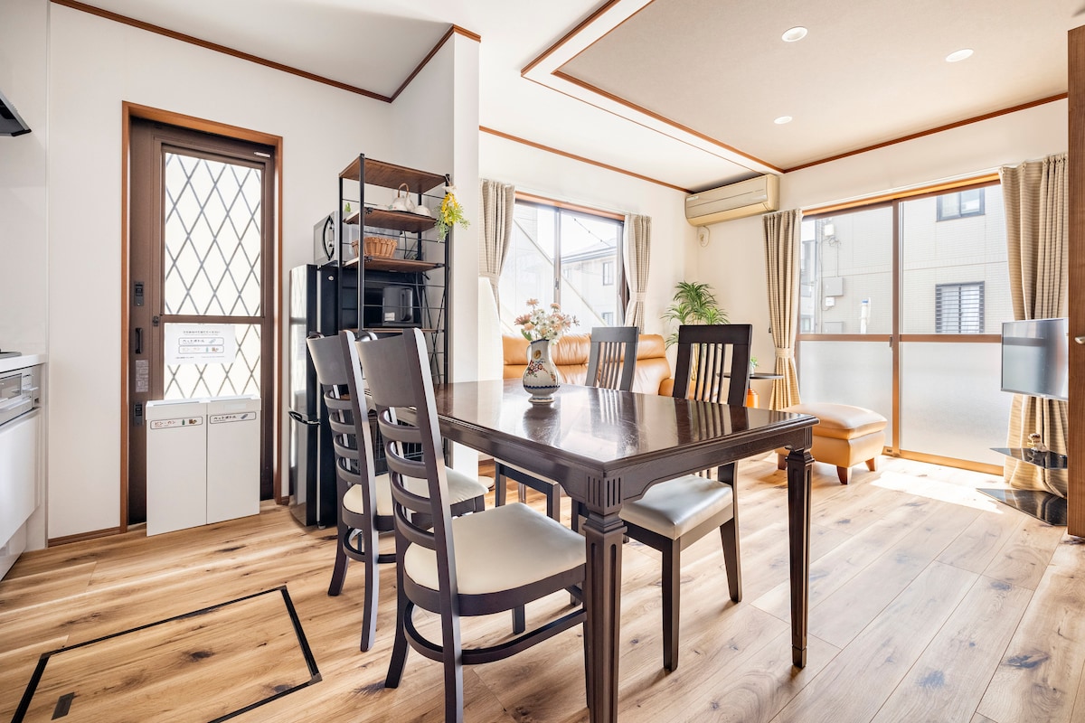 2 dormitorios (uno en estilo occidental, otro en sala de tatami tradicional japonés), sala de estar, cocina totalmente equipada con comedor, baño, baño con bañera y ducha, lavandería (con detergente) y balcón. Se proporciona wifi de alta velocidad y un kit de wifi portátil. Perfecto para el trabajo a distancia y la estancia prolongada es bienvenida. El huésped tiene acceso privado a todo el apartamento en el segundo piso con entrada segura por tu cuenta. El anfitrión vive en el tercer piso. La planta baja es un pequeño restaurante okonomiyaki.