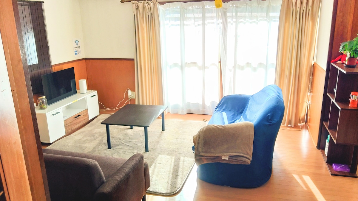Esta es una casa tradicional japonesa con una gran entrada y cortinas blancas "Noren". Puedes alquilar toda la casa y es para un máximo de cuatro personas por día. (Hay dos dormitorios). Hay una sauna privada al aire libre en el jardín. Hay wifi de alta velocidad gratuito disponible, por lo que puedes usarlo para el espacio de trabajo, etc. También hay una biblioteca de 5000 libros, y también hay hamacas y sillas personales disponibles. Puedes relajarte y disfrutar leyendo tus libros favoritos.