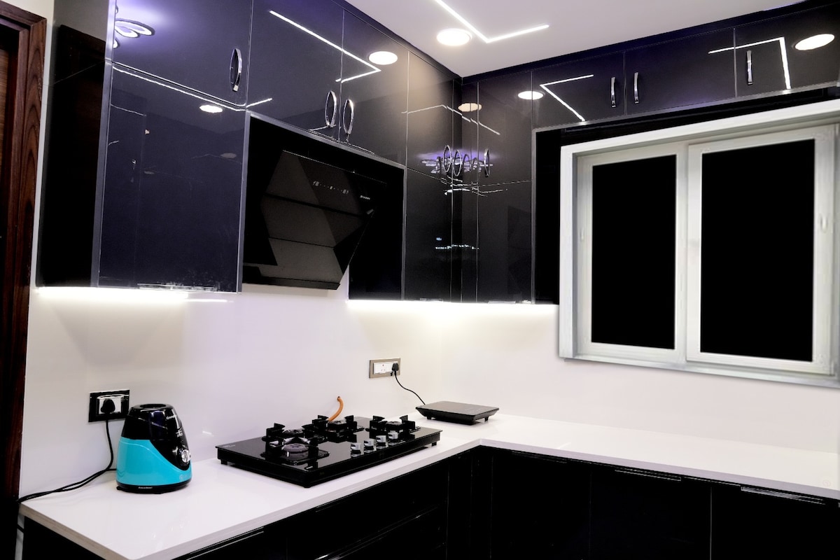 MyHausStays tiene 10 propiedades en Varkala, Mysore, Hyderabad, Trivandrum y Vijayawada y pronto se expandirá a Munnar y Coorg. Alójate con nosotros una vez y consigue un 20 % de descuento en tu próxima reserva en cualquier otra propiedad que poseamos. Disfruta de una vida de lujo con amigos y familiares en este nuevo y espacioso apartamento de 3 dormitorios (con aire acondicionado) en Vijayawada con una mesa de futbolín de tamaño completo y TV LED de 50 pulgadas. Se encuentra en Ajit Singh Nagar, a 15 minutos de la estación de tren, MG Road y Benz Circle y a 20 minutos del templo Kanaka Durga.