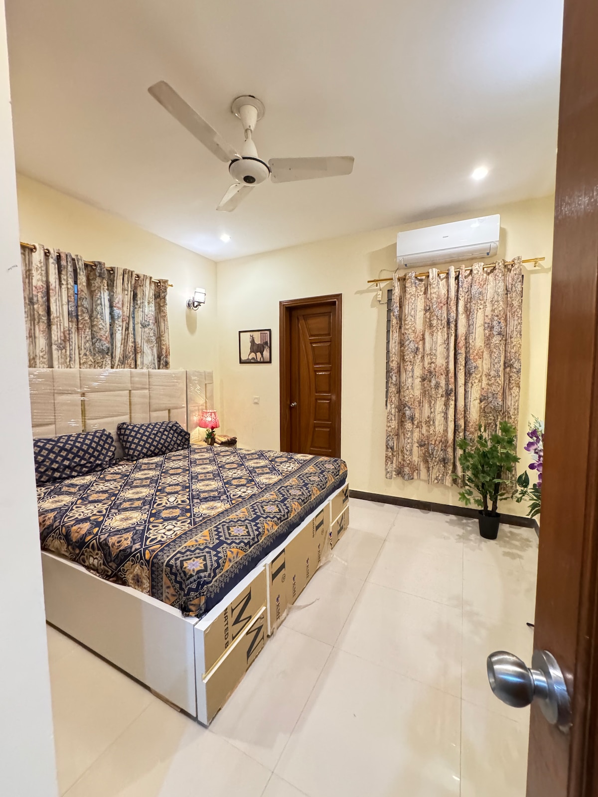 Welcome to your cozy & secure 2-bedroom apartment in DHA Phase 7 Extension! This bright, air-conditioned space offers attached washrooms, a shared kitchen, and rooftop access. Enjoy a great view, natural light, and a peaceful vibe. Located near a chai dhaba, restaurants, parks, and a bank with 24/7 security, convenience is at your doorstep. Smart TV, fast WiFi, easy check-in, and a comfy stay await! Perfect for families, solo travelers, or professionals. Book now and feel at home!