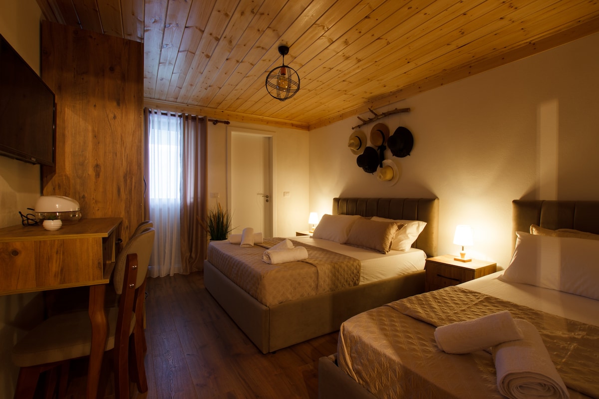Disfrute de la comodidad en Grey Stone Suites, dos departamentos modernos uno al lado del otro en el centro histórico de Gjirokastër, a pocos pasos del antiguo bazar y del castillo. Perfecto para parejas, amigos o familias, reciben hasta 6 huéspedes en total. Disfruta de un diseño elegante, un ambiente acogedor y los mejores servicios en un entorno tranquilo donde la tradición se encuentra con el lujo. Ya sea en solitario o en grupo, tu elegante escapada te espera. ¡Reserva ahora y descubre Gjirokastër de una manera verdaderamente única!