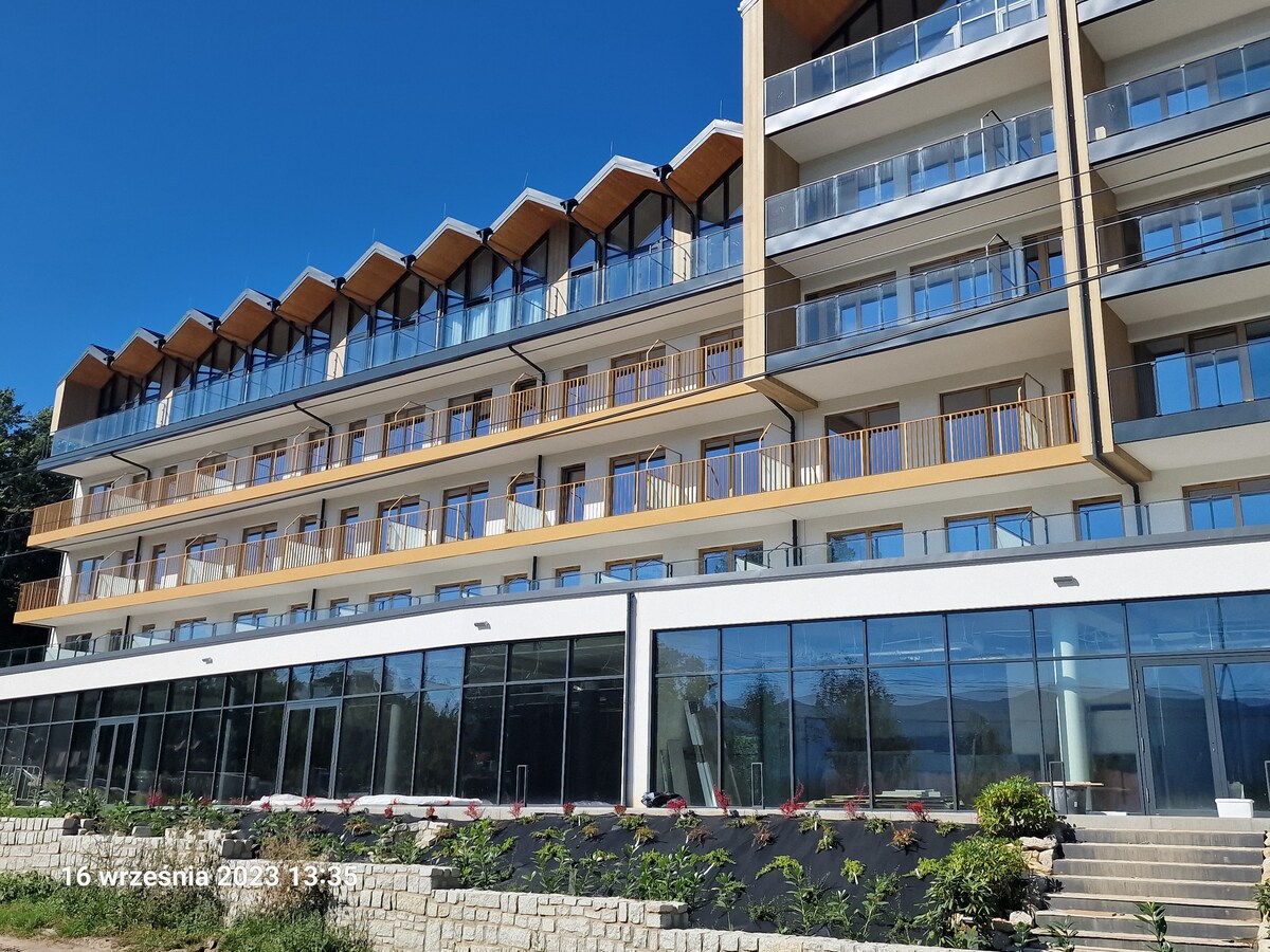 Precioso apartamento nuevo con vistas intactas a la montaña. Dormitorio, salón con cocina y baño. Equipado con camas cómodas y armarios cómodos. La cocina está totalmente equipada y el baño tiene lavadora y secadora. Toallas, fundas nórdicas para 4 personas. El apartamento está ubicado en el Green Park Resort , hay piscina cubierta, saunas, gimnasio, parque infantil , estacionamiento incluido . Todos los servicios deportivos se abrirán a partir del 1 de diciembre, con una temperatura del agua de 28 grados entre 9 y 21.