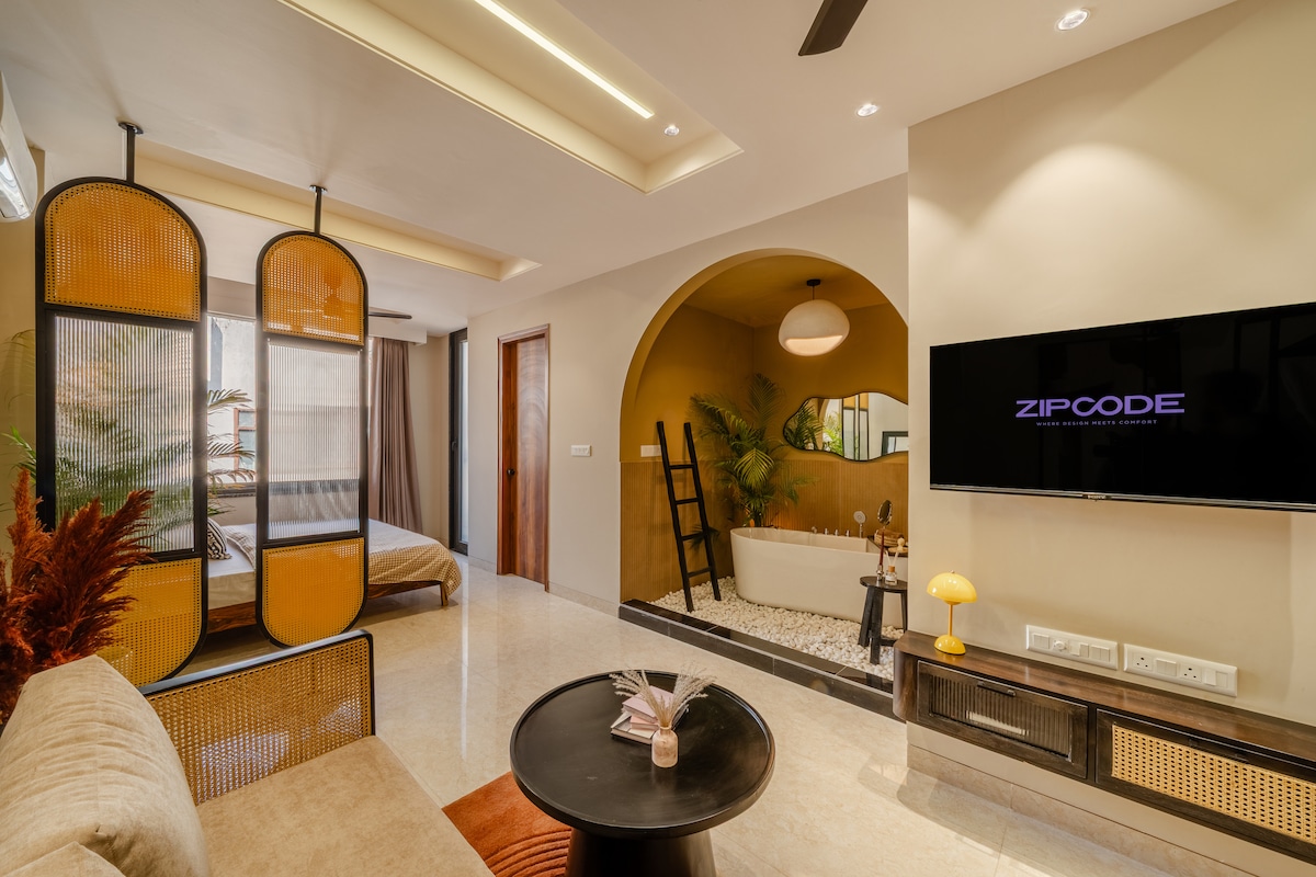 Welcome to Admire Noir | Private Bathtub Suite – a stylish upscale stay bang on Golf Course Road, Gurgaon. Walk just 200m to Starbucks Reserve, Magnolia Bakery, KOCA, Sorbo Pub & Anardana. Cyber Hub is only 5 mins away and Sector 42 Rapid Metro is nearby. To make your stay effortless, we’ve equipped the space with everything you need: Private Bathtub Microwave Refrigerator Electric kettle TV Private washroom Small kitchenette Cutlery Free high-speed WiFi