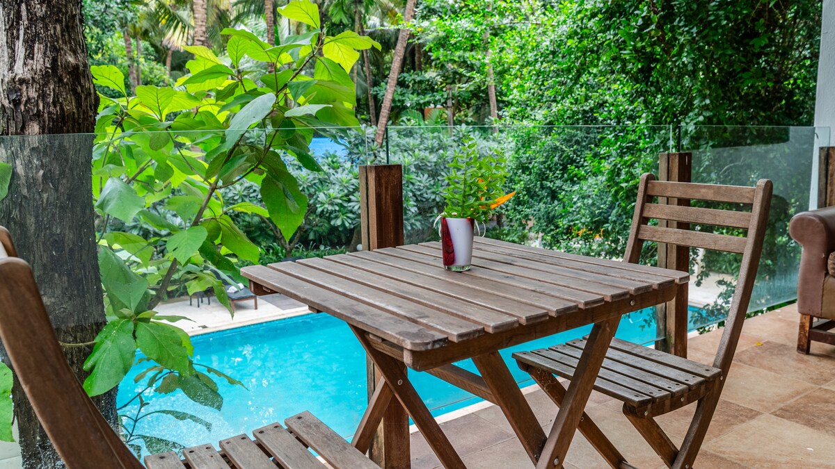 Escape to a serene paradise just steps away from the Arabian sea offers the perfect blend of comfort, nature, and luxury. Surrounded by swaying palms and lush greenery with warm wooden interiors leading to a peaceful coastal view that sets the tone for a rejuvenating stay. Enjoy morning tea or sunset chats on the spacious open terrace as the ocean breeze drifts through. Whether you’re planning a family getaway or a group retreat, this beachside villa delivers peace and unforgettable moments.