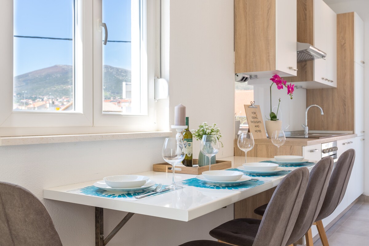 Este acogedor apartamento a estrenar con una gran terraza está totalmente equipado con los dispositivos modernos para satisfacer todas tus necesidades. Situado entre las dos ciudades históricas de Split, a 13 km, y Trogir, a 8 km del apartamento y cerca del aeropuerto, a solo 2 km. Ideal para familias, amigos y viajeros de negocios.