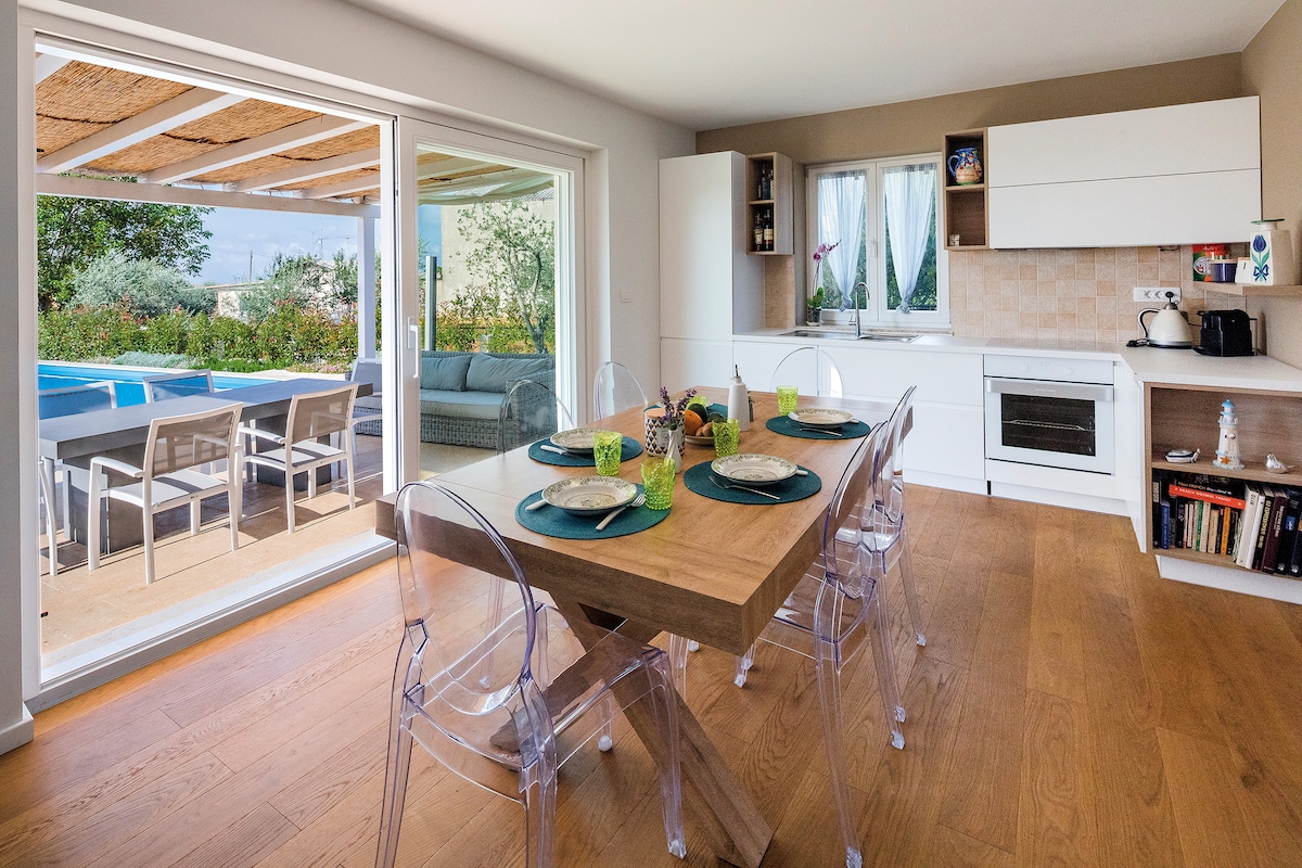 Villa ALMA con piscina, barbacoa