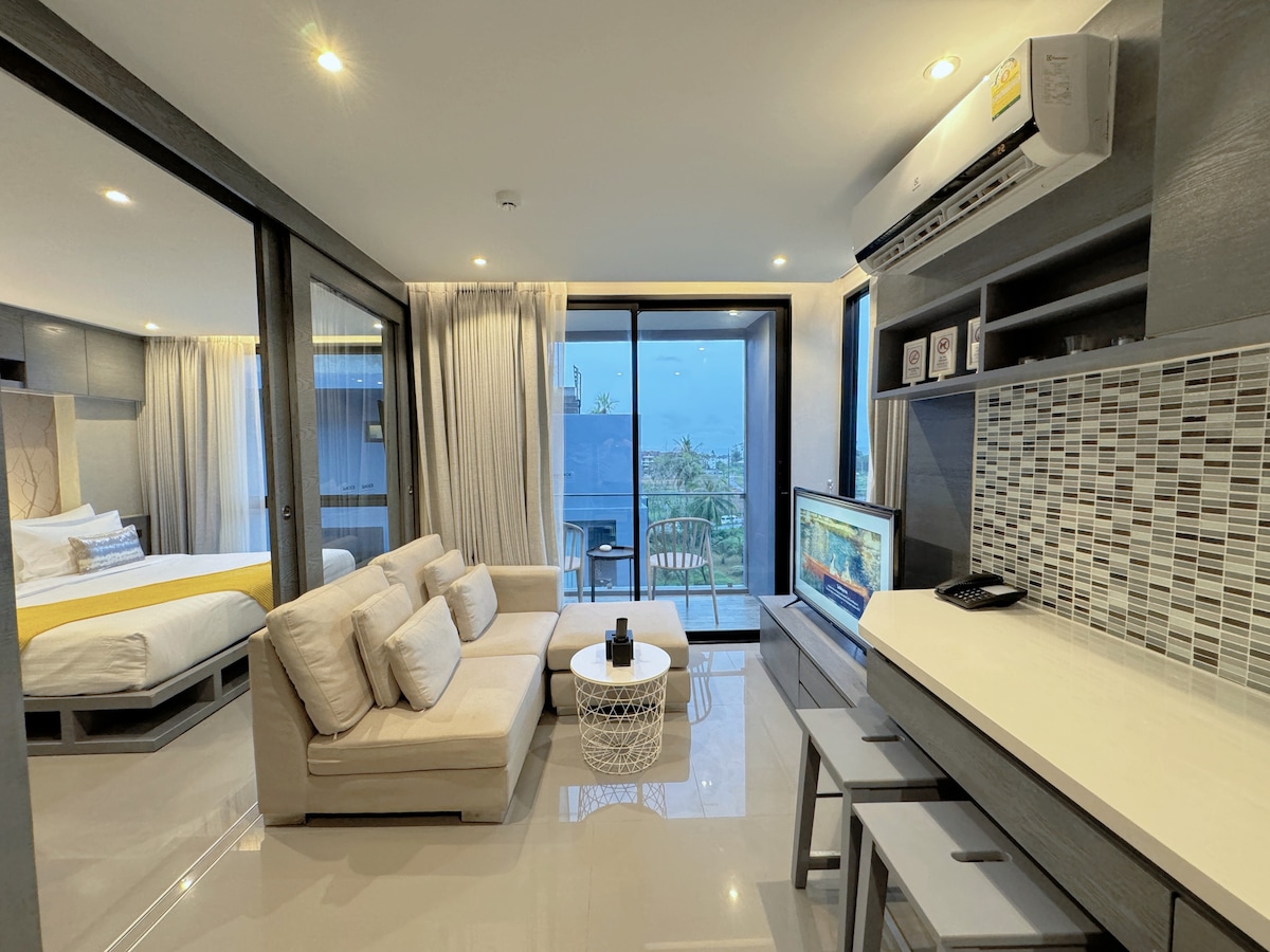 Beautifully designed apartment located close to Patong Beach. -Amazing swimming pool -Spacious wardrobe -Kitchen, Bedroom, Balcony -Bathroom with shower -Fast Wifi fiber -Top class gym with MATRIX equipment Included: -spacious 1-bedroom, 30 sq. m. condo has 1 bedroom, 1 bathroom, separate kitchen and wardrobe -towels, bed linen, shampoo soap, stove, microwave, smart TV, fridge - Hi-speed internet -car parking -gym, swimming pool