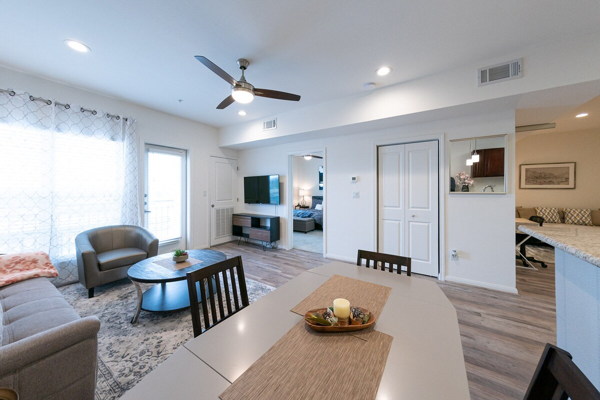 Experimenta la serenidad en nuestro apartamento 2BR-2.B convenientemente ubicado a pocos minutos de LaCenterra en Cinco Ranch, Katy Mills y el Hospital Memorial Hermann Katy Mantenemos nuestros alojamientos impecables y suministramos tu estadía con colchones tipo nube y sábanas de lujo por una fracción de los precios de los hoteles. Los apartamentos también tienen un espacio de trabajo dedicado dentro del centro de negocios con wifi increíblemente rápido. ¿Te hospedas a largo plazo con nosotros? ¡Disfruta de los descuentos semanales y mensuales proporcionados!