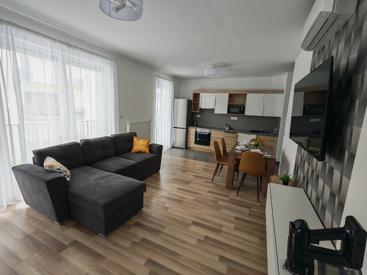 Moderno apartamento de 3 habitaciones cerca del corazón de Kecskemét, en una zona residencial tranquila y de nueva construcción. El alojamiento ofrece sábanas y toallas de calidad, habitaciones con aire acondicionado y muebles elegantes. El apartamento es una opción ideal para parejas, familias o viajeros de negocios que deseen relajarse en un entorno tranquilo, pero permanecer cerca del ajetreo y el bullicio del centro de la ciudad, a solo unos minutos a pie de la plaza principal de Kecskemét, restaurantes, cafés, tiendas y atracciones culturales.