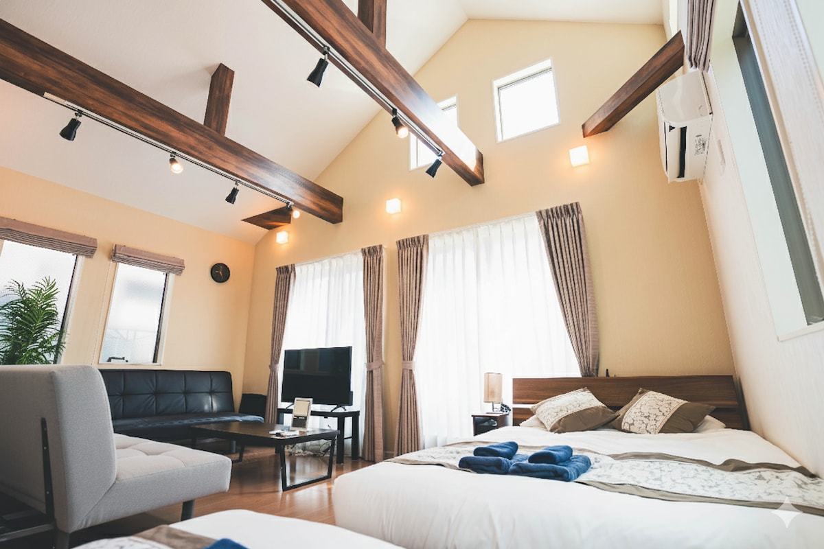 2022年12月新开业民宿.在这处独具特色、适合家庭入住的房源中留下美好回忆。 【KIKI HOUSE】是一栋两层楼房。位于东京23区之一的葛飾区。 房间面积为83平方米。空间足够7位客人舒适入住。适合家族或好友一同出游时入住。房源位于宁静的区域,您可以在这里悠闲地度过美好时光。附近有许多当地商店的购物区和餐厅。附近有大型超市和便利店! 前往成田( Narita )机场和羽田( Haneda )机场都很方便。 轻松前往浅草、东京晴空塔等著名旅游景点。 【KIKI HOUSE】 每层都有卫生间,每个房间都有空调。 【1楼】客厅和带有厨房的餐厅,功能齐全的浴室,洗漱间,以及卫生间 【2楼】两间卧室以及卫生间 ★卧室1、宽敞的空间,配有两张双人床(可住4人) ★卧室2、日本榻榻米房间,室内装潢带有日本风情,营造出舒适轻松的氛围。(可住3人) 【屋顶】是大露台,带有桌椅和遮阳伞(请注意,通往露台需要走室外楼梯) 【KIKI HOUSE】最近的车站是京成立石站【Keisei Tateishi station】 最近的车站仅3分钟步行路程
