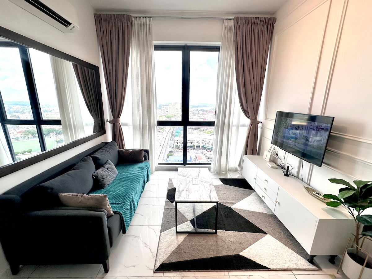 Situado en el piso superior del edificio más alto del corazón de Kota Bharu. Desde nuestra casa se puede disfrutar de una vista espectacular de la ciudad de Kota Bharu. Ofrecemos un alojamiento cómodo y contemporáneo para vacaciones, estancias y viajes de negocios. Servicios: - Wi-Fi gratis. - 1 cama tamaño king y 1 sofá cama tamaño queen - Televisor inteligente (Netflix y YouTube) - Dispensador de agua con agua fría y caliente. - Cocina de inducción. - Cubiertos. - Refrigerador -Secador de pelo - Lavadora y plancha. - Toallas, champú y gel de ducha.