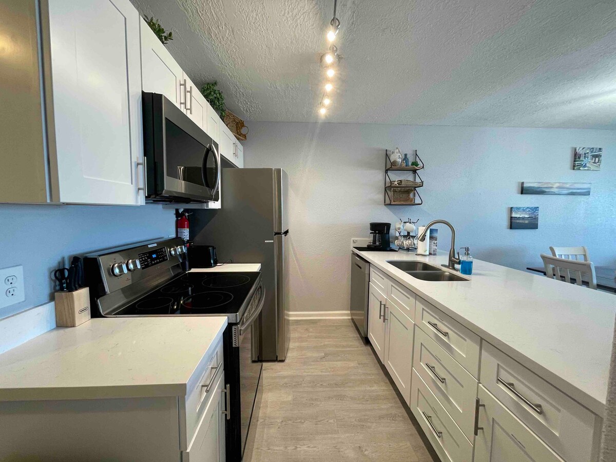 Te encantará cada momento que pases en este apartamento bellamente remodelado y redecorado, ubicado justo enfrente del Seawall Boulevard desde el golfo. Puedes sentarte en la mesa del comedor y disfrutar de la vista al mar o llevar tu comida al amplio patio y disfrutarla allí. La ubicación está lo suficientemente lejos del bulevar como para ser sorprendentemente tranquila, pero en realidad a solo unos momentos de todos los excelentes restaurantes y entretenimiento que ofrece Galveston. ¡Una escapada perfecta para disfrutar en familia y con amigos!