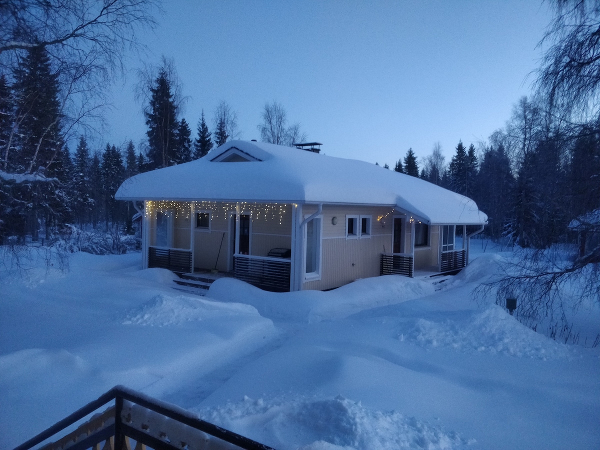 Casa de campo tranquila y atmosférica en una ubicación perfecta a lo largo del río Kemijoki. Relájate junto al fuego con un gran río y un paisaje peligroso. Además de la sauna interior, hay una sauna separada en la orilla. Los servicios de la ciudad están a una distancia razonable en auto. El servicio de safari más cercano está a unos 15 km: SnowTrailSafaris Oy Para desplazarte necesitas un auto.