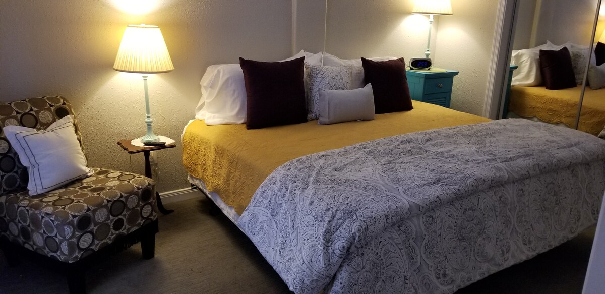 Esta casa de campo tranquila y céntrica seguro que te gustará. Entrada privada a tu propio espacio. Situado junto a High St., a 0,5 millas a pie del centro de la ciudad, hermosas puestas de sol, árboles maduros, jacuzzi y asientos al aire libre. La casa tiene 1 dormitorio con cama tamaño queen, una habitación con dos camas individuales y un sofá cama tamaño queen. Es hora de reducir la velocidad y relajarse en los momentos presentes de la vida.