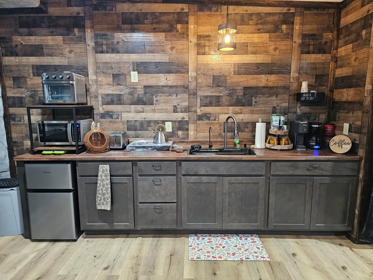 COME. SABOREA. QUÉDATE. Vistas durante todo el año, sabor de temporada. La propiedad cuenta con una bodega/cafetería, un viñedo, senderos para caminar y una vista de 360 grados del campo. Creada con el espíritu de la elegancia rústica, los lujosos detalles de la cabaña seguramente impresionarán. Disfruta de la cena en la cafetería, camina por los senderos, acurrúcate por la noche, pide el desayuno en la cama y una sesión de yoga por la mañana en el patio. Disfruta del ambiente del patrimonio agrario de Kentucky con comodidades modernas y elegantes.