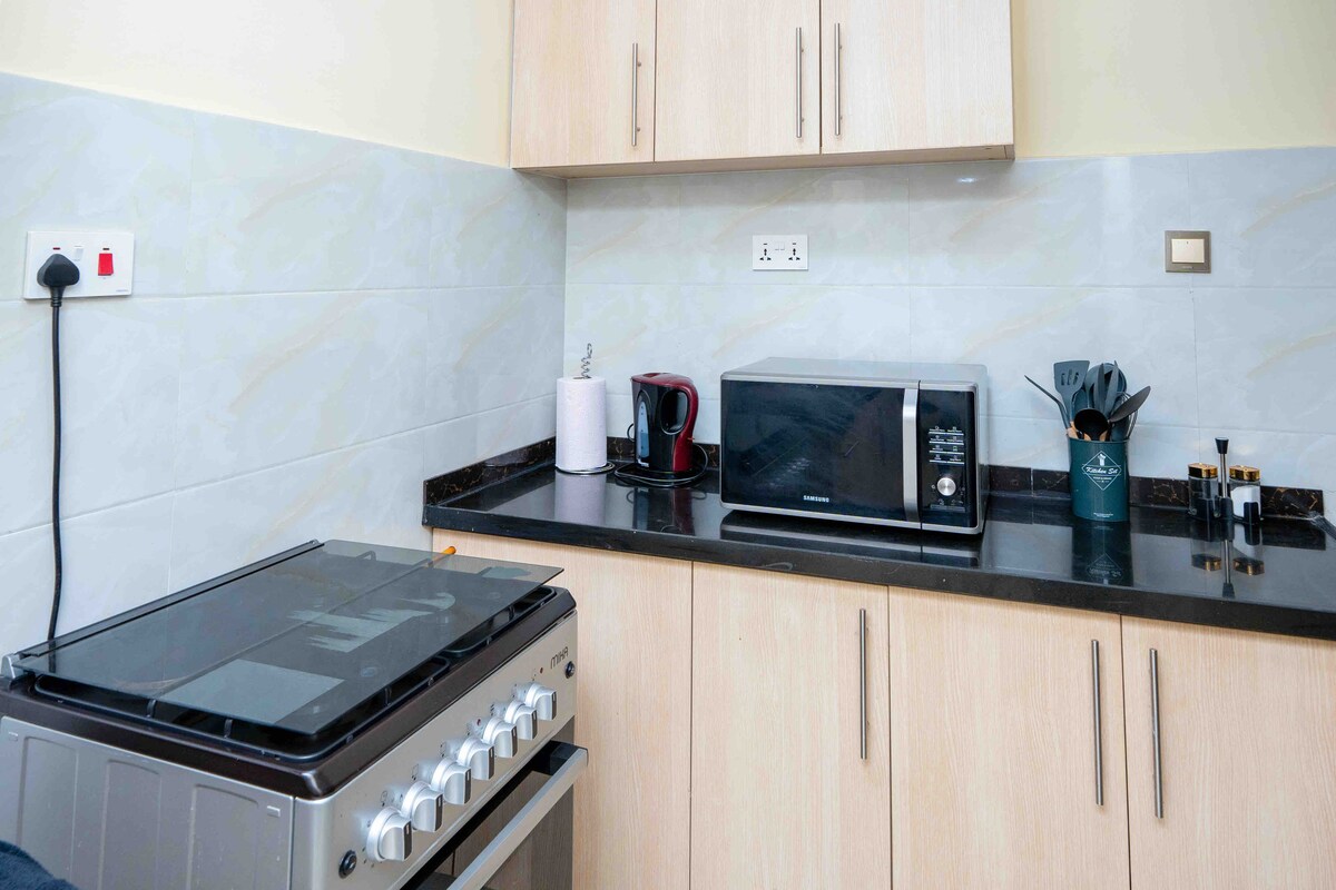 Un elegante apartamento ejecutivo con su propio respaldo eléctrico. Muy cerca de Quickmart, Valley Arcade, Yaya Center y CBD. Un refugio para jugadores con una Play Station 5. Esta casa amueblada con buen gusto ofrece serenidad, ambiente, paz y tranquilidad para disfrutar de tu estancia. Disfruta del entretenimiento en nuestro televisor de 75 pulgadas, completo con YouTube Premium, Netflix y Free IPTV para todas tus transmisiones en vivo, películas y series. Lo mismo también está disponible en el televisor del dormitorio principal. El edificio también cuenta con un gimnasio totalmente equipado.