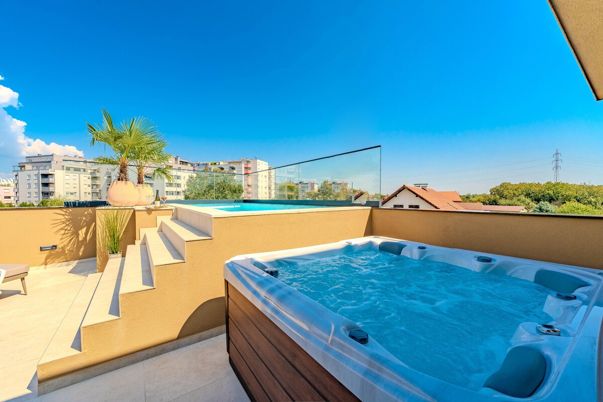 Piezas de arte clásico adornan las paredes de esta elegante casa. El alojamiento de vacaciones cuenta con vigas arquitectónicas originales, suelos de madera cálida, un solárium, una sauna de vapor y un patio trasero con un jardín bien cuidado y un comedor bajo la exuberante pérgola. Hermosa piscina cubierta que está disponible desde el 1 de abril hasta el 1 de noviembre. ¡La planta baja, el primer piso, el jardín y la piscina están disponibles solo para los huéspedes! Los propietarios están en el sótano con entrada independiente. La casa se encuentra cerca del parque Maksimir, a solo 10 minutos en coche del centro de la ciudad, hogar de excelentes opciones para cenar, ir de compras, hacer turismo y mucho más.