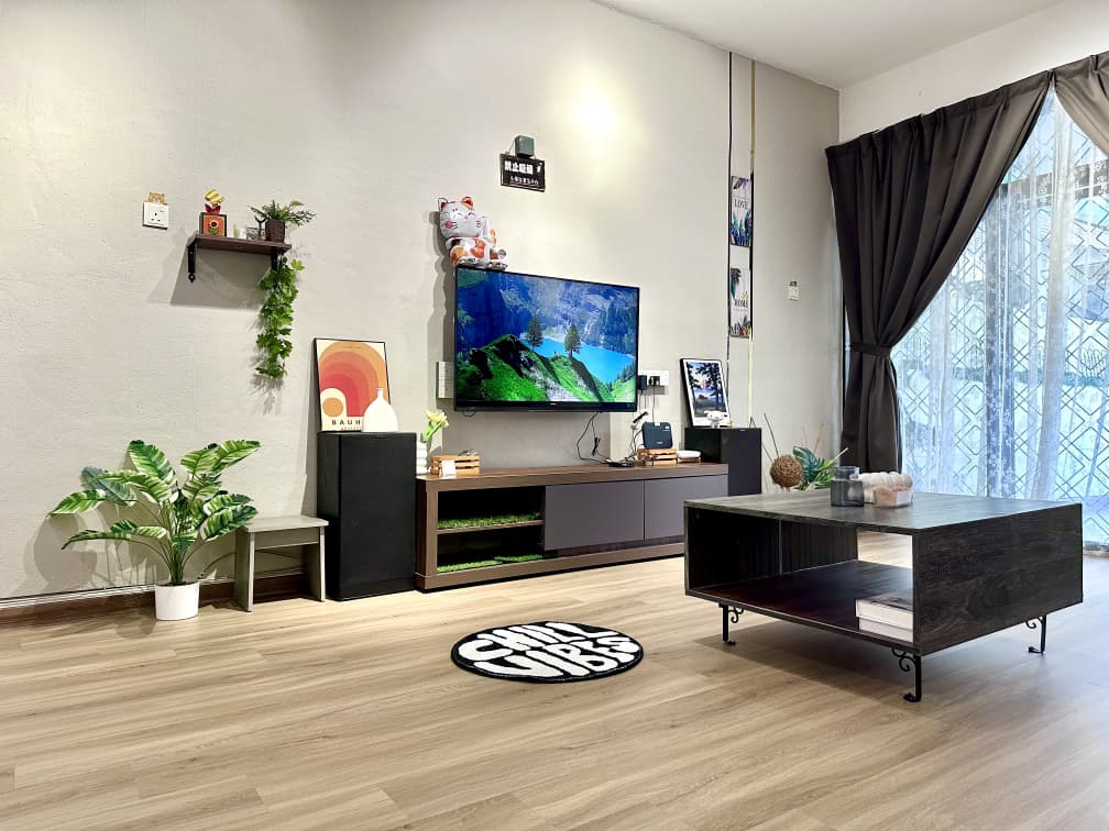 Cozy Semi-D Home | Walk to AEON | Private Pool Enjoy a warm and comfortable stay in this stylish Semi-D home, just a short walk to AEON Mall. Featuring 4 bedrooms, 3 bathrooms, and 5 queen beds, it comfortably hosts up to 10 guests. Fully air-conditioned with a private 4.5m second-floor pool, MUJI-style downstairs and INDUSTRIAL design upstairs. Parking more then 5 cars, complete amenities, family-friendly with baby cot and tub, all set in a peaceful and scenic environment.