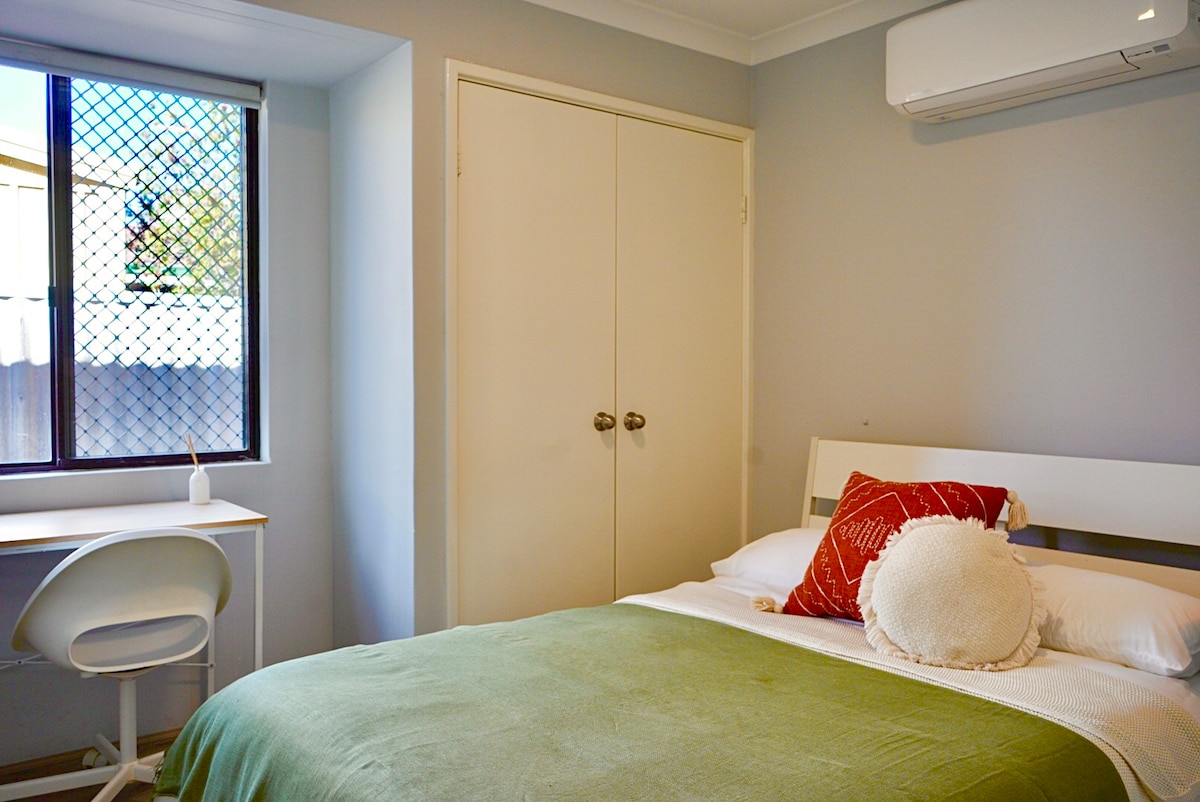 *Acerca de la casa* Esta es una casa villa de 3 dormitorios que comparto con mi marido. De vez en cuando, un amigo se queda unas noches, ya que trabaja en FIFO. *Tu habitación* Estará equipada con una cama doble, mininevera, TV, escritorio y armario. * Espacios compartidos * Sala de estar, cocina, comedor, baño y ducha. * Ubicación * A 10 minutos en coche del aeropuerto y a 15 minutos del distrito financiero. La parada de autobús está a 3 minutos a pie, el centro comercial Belmont a 10 minutos a pie, restaurantes, cafeterías y mucho más.