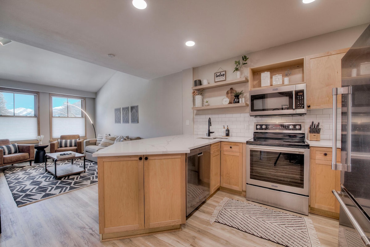 ¡Bienvenido a nuestro luminoso apartamento de 1 dormitorio en el corazón de River Run Village (Keystone Mountain)! ¡Evita los autobuses hasta los remontes, ya que este apartamento está a 3 minutos a pie de la telecabina! Este apartamento tiene capacidad para cuatro personas y cuenta con un dormitorio privado con cama tamaño king, así como una unidad actualizada con encimeras de granito. Disfruta de tu bebida favorita mientras tomas el sol y vistas espectaculares de las pistas, ya sea en el interior calentado por el fuego o en el exterior en tu propio balcón privado.