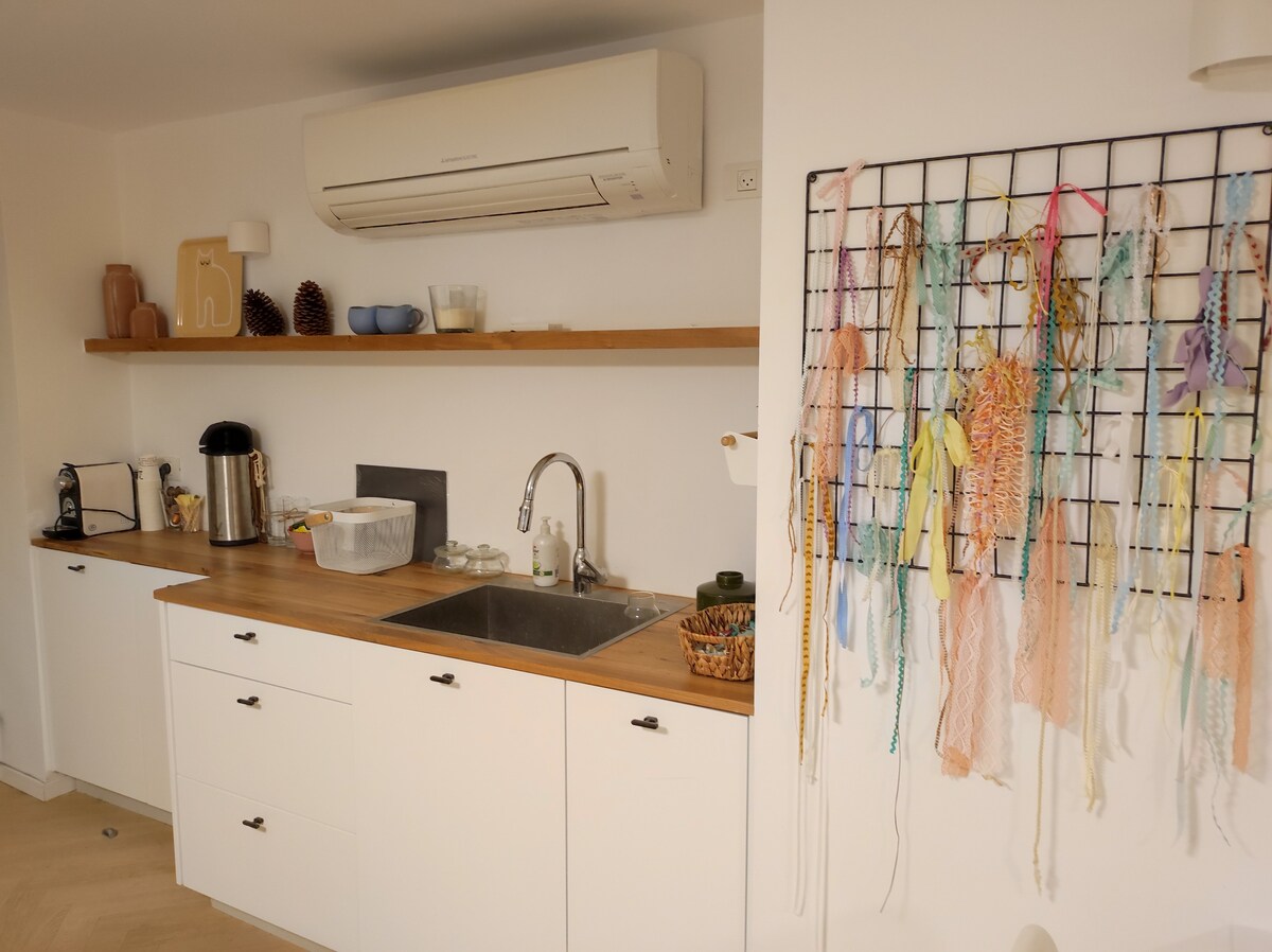 ⸻ Elegante suite de jardín con un diseño fresco y moderno en una de las zonas más seguras y deseables de Tel Aviv. Disfruta de wifi de fibra ultrarrápido, un nuevo y potente aire acondicionado, una cocina totalmente equipada con Nespresso, un baño nuevo y muebles completamente nuevos. Lavadora y secadora en el patio. Sal a un jardín privado con asientos. Por lo general, hay estacionamiento gratuito en la calle. Un refugio compartido está a solo 5 metros de distancia. La estancia perfecta, tranquila y relajante en Tel Aviv.