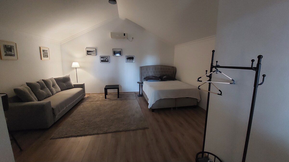 Desconecta de la rutina en este alojamiento único y relajante. El dormitorio y el baño totalmente equipados harán que tu estancia sea cómoda. La cocina compartida y el espacio común añadirán valor a tu estancia. La fragancia especial y los detalles decorativos únicos atraerán tu atención. Dispositivos inteligentes como TV, luces y otros dispositivos te ayudarán durante tu estancia. El barrio tranquilo es la clave de tu tranquilidad y un corto paseo te llevará a la costa del mar Negro. Solo ven y disfruta.