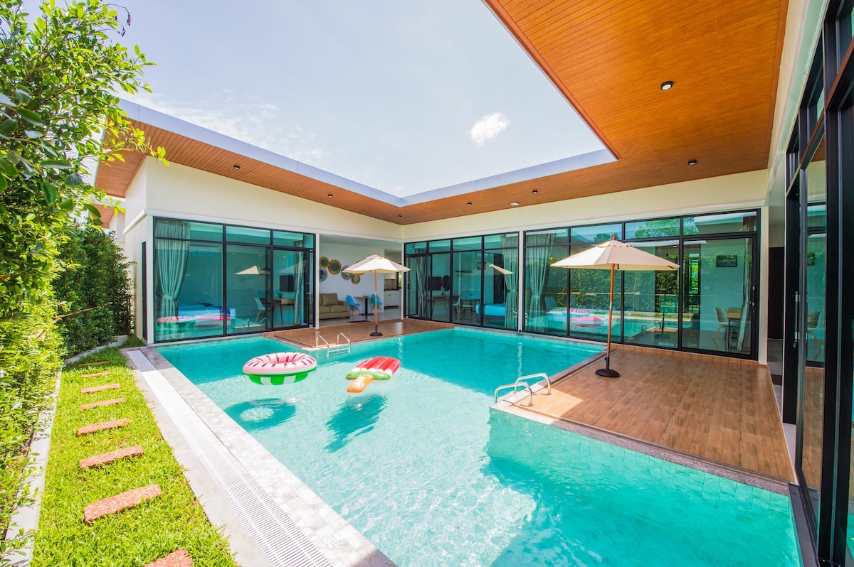 Situada en la serena playa de Ao Yon de Phuket, esta residencia de alta gama recién reformada ofrece acceso exclusivo a la playa y una cómoda proximidad a los mejores restaurantes de la zona. Ubicada en un barrio tranquilo, se erige como una de las mejores opciones de alojamiento de Phuket. Ya se trate de unas vacaciones o de una estancia prolongada, esperamos tener el placer de hospedarte, con servicios de limpieza incluidos.