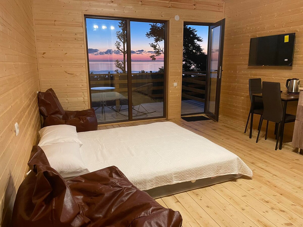Cheerful 1-bedroom cabin with amazing seaside view