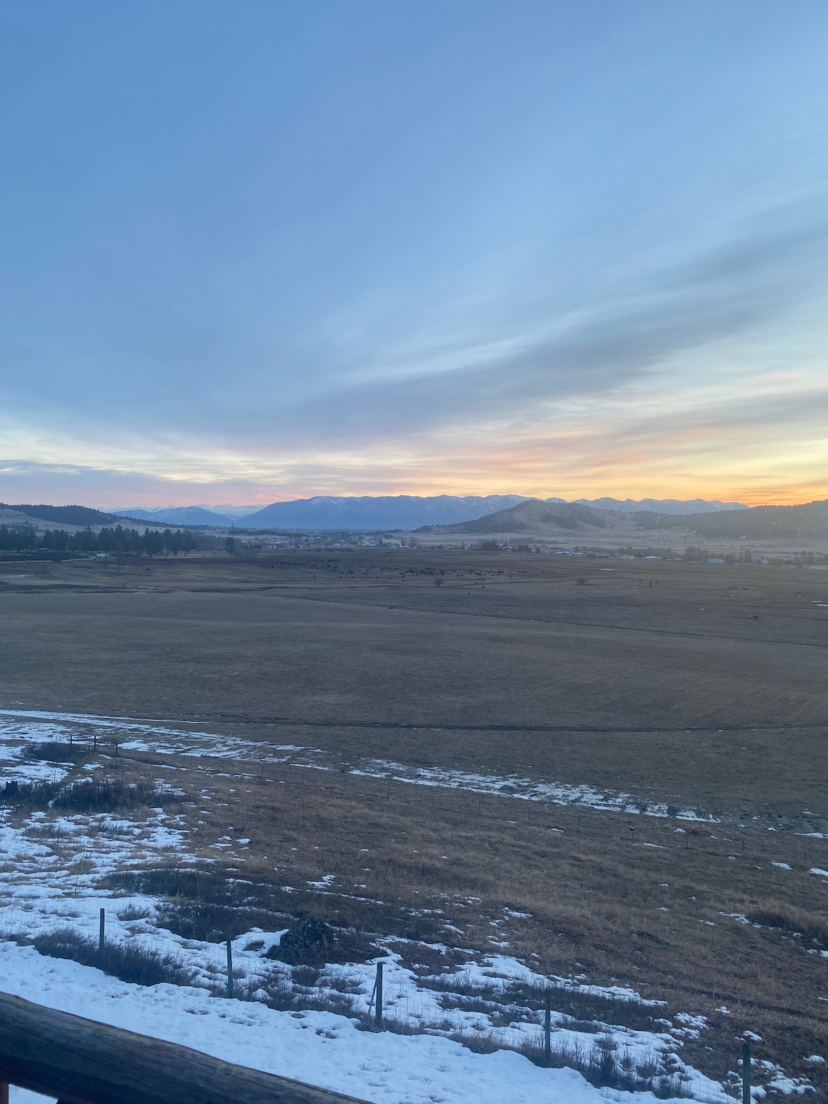 Esta es una cabaña de nueva construcción hecha con estándares de lujo y se encuentra en nuestra granja por un camino privado, situada en el extremo norte del lago Flathead. Las vistas son espectaculares, ya que puedes disfrutar de vistas de 360 grados del valle, el lago Flathead, el parque Glacier, las montañas Swan, la montaña Blacktail y los grandes cielos y estrellas de Montana. La única tierra entre nuestra granja y el lago es una reserva de aves acuáticas. Hay mucha vida silvestre en la propiedad y es un lugar maravilloso para disfrutar del valle de Flathead.