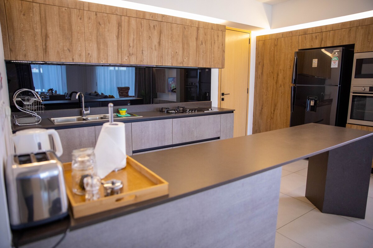 Disfruta de una experiencia de lujo en este céntrico alojamiento. SERVICIOS PRÉMIUM Aire acondicionado Freidora de aire/cocina completa Lavandería gratuita en el alojamiento Mosquiteras en puerta/ventana Internet rápido prémium (60 Mbps) Netflix Mesa de centro/escritorio con tapa elevadora (trabaja en el sofá) Purificador de agua para agua limpia. SERVICIOS DEL EDIFICIO Ubicación céntrica. Aparcamiento privado Gimnasio, sauna y baño turco. Sala de juegos con squash, billar Piscina infinita. Restaurante en el edificio Tienda de alimentación en el edificio Gran presión de agua.