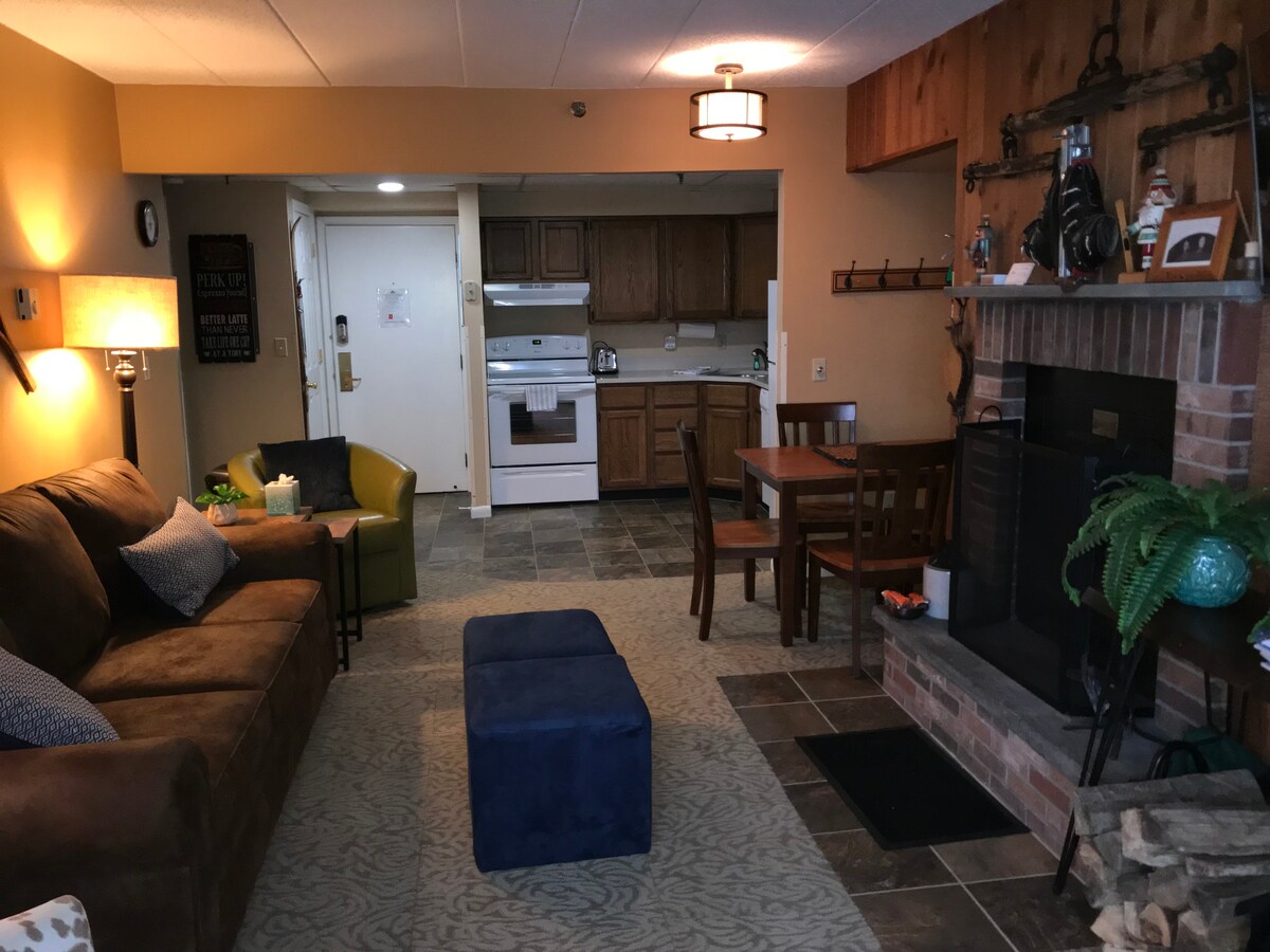 Acogedor apartamento de montaña Ski On-Ski Off con chimenea de madera real y cama tamaño king en Sunrise Village en la montaña Killington. Las actualizaciones incluyen todos los muebles nuevos en el dormitorio principal y el dormitorio de invitados, todos los electrodomésticos de acero inoxidable de primera línea nuevos en la cocina gourmet, sala de estar decorada con buen gusto con nuevo sofá cama tamaño queen y sillas a juego. Simplemente camina hasta el final del estacionamiento hasta la pista de esquí Ski On/Off. Soy dueño de la unidad contigua, más información a continuación.