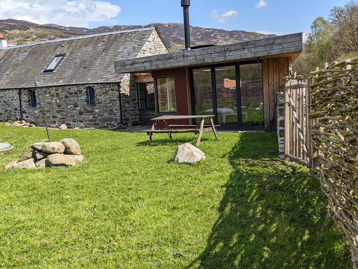 Desconecta de la rutina en este alojamiento único y relajante. Disfruta de este hermoso entorno desde la calidez y comodidad del salón de planta abierta o desde tu propia terraza privada con vistas extraordinarias sobre Dumgoyne y las colinas de Campsie. Estarás rodeado por campos, bosques o montañas, pero lo suficientemente cerca como para salir a tomar un café y un pastel en el pueblo local o probar un pequeño trago en la destilería de whisky de Glengoyne.