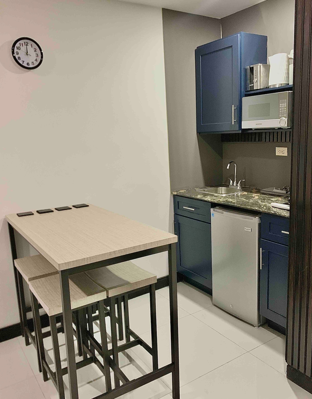 Moderno apartamento tipo estudio de concepto abierto en el tercer piso, ideal para viajeros de negocios o de placer. Este no es un dormitorio; es un estudio de estilo hotelero con dormitorio y sala de estar en un solo espacio, además de una cocina pequeña. Ten en cuenta que no hay ascensor. Este alojamiento de Airbnb incluye wifi, aire acondicionado, agua caliente, ventanas grandes con cortinas opacas, cama tamaño queen, lavadora y secadora en el alojamiento, refrescos y un baño moderno con artículos básicos.