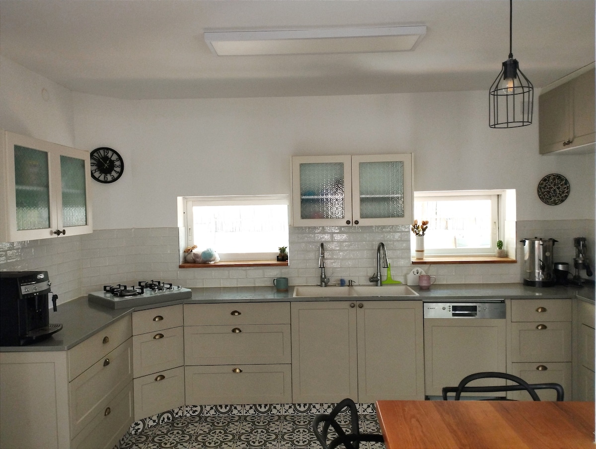 Casa de campo, en un acantilado con vistas al mar de Galilea. Un jardín de hadas, flores silvestres, rosas, árboles frutales y un huerto. Mi casa es un trabajo en progreso, llena de encanto y ambiente, salpicada de objetos vintage y de arte. Clásico para unas relajantes vacaciones familiares. En las inmediaciones hay rutas de senderismo de todos los niveles, manantiales y una abundancia de naturaleza en todo su esplendor. En la casa de la «M.M.D.» Ver habitación 3