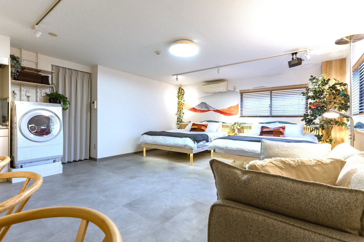 Estudio Japandi tranquilo y nuevo|Cerca de JR・metro|Lavadora y secadora|Ascensor|Almacenamiento de equipaje