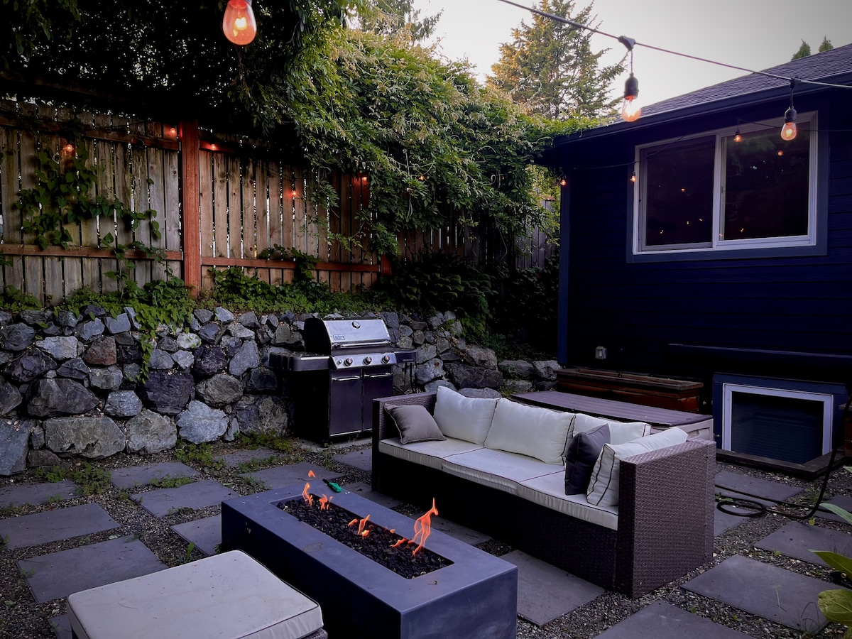 Alójate en el corazón de Ballard en nuestro estudio Oasis privado en la 1ª planta con registro autónomo y una cómoda cama tamaño king. Disfruta de un aparcamiento privado con un cargador de coches eléctricos de 50 amperios de última generación. Camina 3 minutos hasta la calle Market con sus restaurantes, bares y tiendas de moda, o súbete al transporte público en la esquina. Explora la escena turística de Ballard, visita la escalera de peces de las esclusas o relájate en el parque de la playa Golden Gardens, todo a un corto paseo en bicicleta o a pie. Disfruta de la comodidad urbana en un barrio vibrante.
