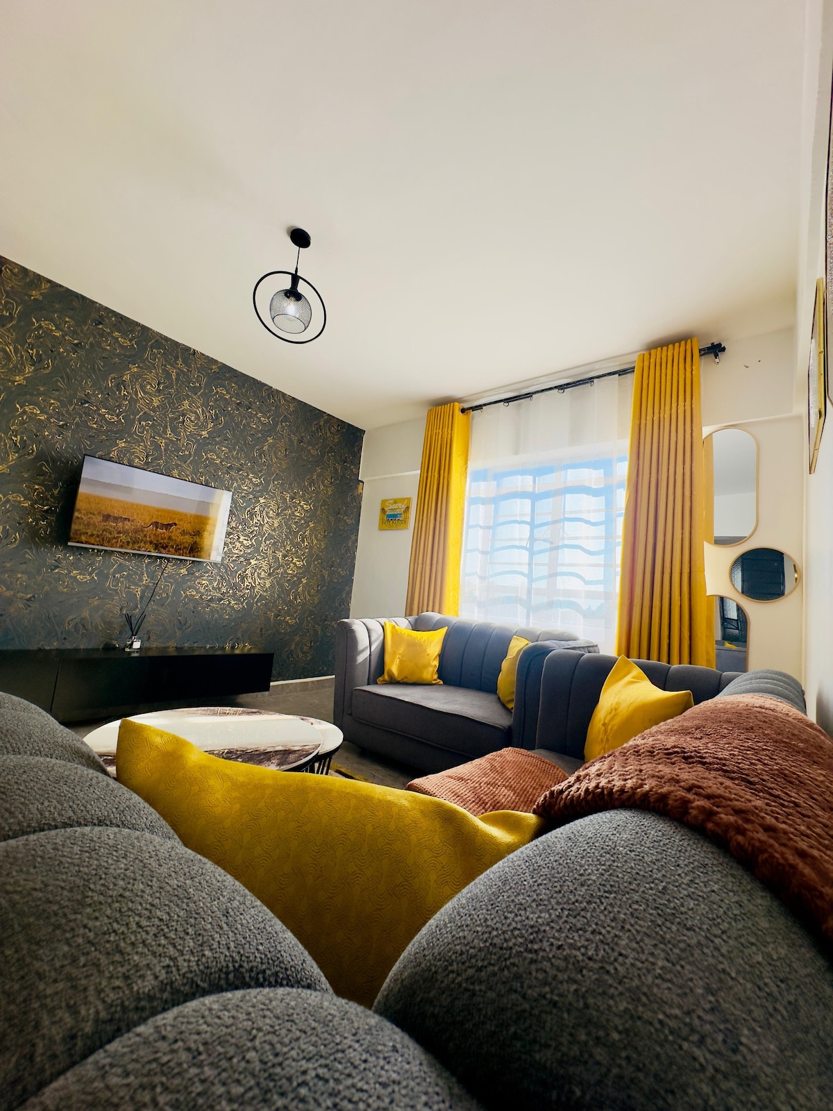 Disfruta de una experiencia elegante en este lugar céntrico, que está a 4 minutos a pie del centro comercial West End, que alberga Acacia, oficinas de venta de entradas, Java, supermercados, Woolworths y muchas más tiendas pequeñas. Está a 5 minutos del santuario del parque Impala y a 7 minutos en coche de la playa de Dunga. El apartamento también está situado en un lugar seguro, justo detrás del centro comercial Tuffoam, junto al Tribunal Superior de Milimani. También tiene un generador de respaldo y acceso por el ascensor al tercer piso.